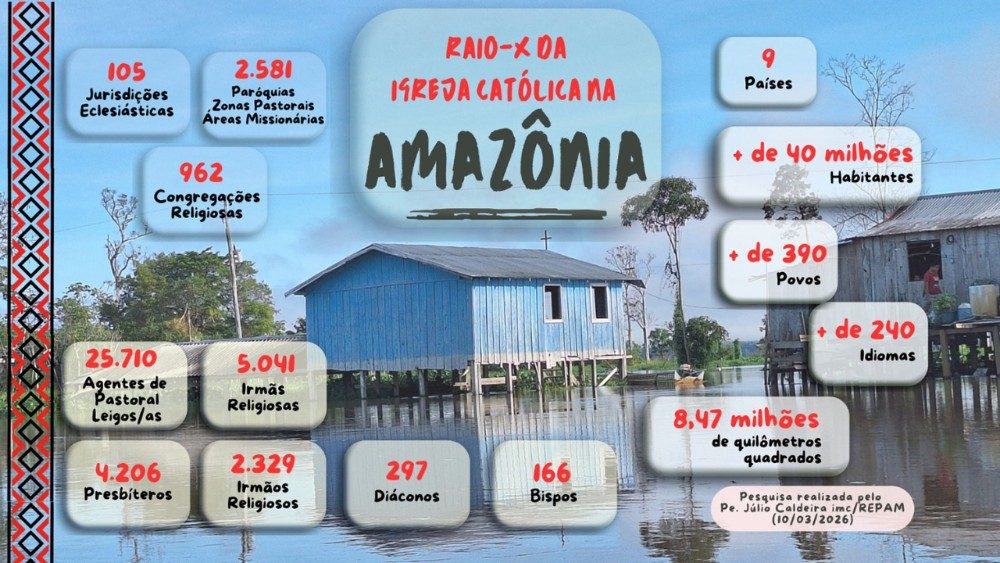 No vasto território amazônico existem 105 jurisdições eclesiásticas distribuídas pela Bolívia, Brasil, Colômbia, Equador, Guiana, Guiana Francesa, Peru, Suriname e Venezuela. Nelas encontram-se 2.581 paróquias, zonas pastorais ou áreas missionárias, além de milhares de comunidades eclesiais de base que sustentam a vida pastoral em territórios muitas vezes remotos. Segundo o Annuario Pontificio, a missão da Igreja na região é animada por 25.710 agentes pastorais leigos, 5.041 religiosas, 4.206 presbíteros, 2.329 religiosos, 297 diáconos permanentes e 166 bispos.