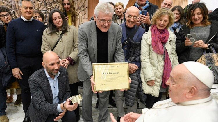 Os alunos da escola militar de Teulié, de Milão, acompanhados pelo capelão Pe. Giovanni Mizzi, entre outros, não deixaram de demonstrar seu afeto ao Papa. Tendo vindo a Roma há poucos dias para o Jubileu das Forças Armadas, da Polícia e das Forças de Segurança, eles doaram a Francisco um quadro que representa a fachada original do Instituto Lombardia. Junto com ele, um busto de bronze de São João XXIII, padroeiro do exército italiano, foi levado ao salão pelos soldados para a bênção.