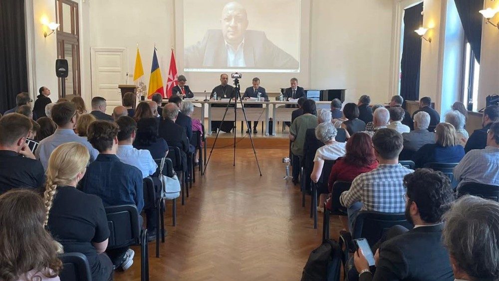 31 mai 2025 – Vatican News. Ambasada României pe lângă Sfântul Scaun și Ordinul Suveran de Malta, în parteneriat cu Institutul Cultural Român, a organizat la Roma vineri, 30 mai 2025, o conferință intitulată ”Coerență și curaj sub povara ideologiei. În amintirea primului cardinal român, Fericitul Iuliu Hossu”. La conferința din ”Anul Cardinal Iuliu Hossu” au luat cuvântul deputatul Silviu Vexler, jurnalistul Sever Voinescu și episcopul Mihai Frățilă, precum și directorul ”Accademia di Romania”, profesorul Rudolf Dinu, gazda evenimentului.