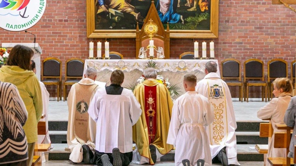 Святая Месса в кафедральном соборе Новосибирска (10 августа 2025 г.). Фото: Алина Николаева - Преображенская епархия в Новосибирске   ((@TV Kana - V)