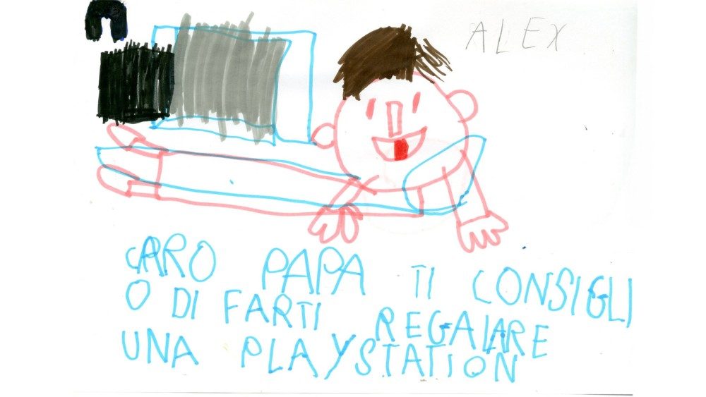 «Дорогой Папа, советую тебе читать много книг», ‒ пишет Эудженио. А Алекс предлагает немного развлечься: «Дорогой Папа, советую тебе попросить в подарок игровую приставку».