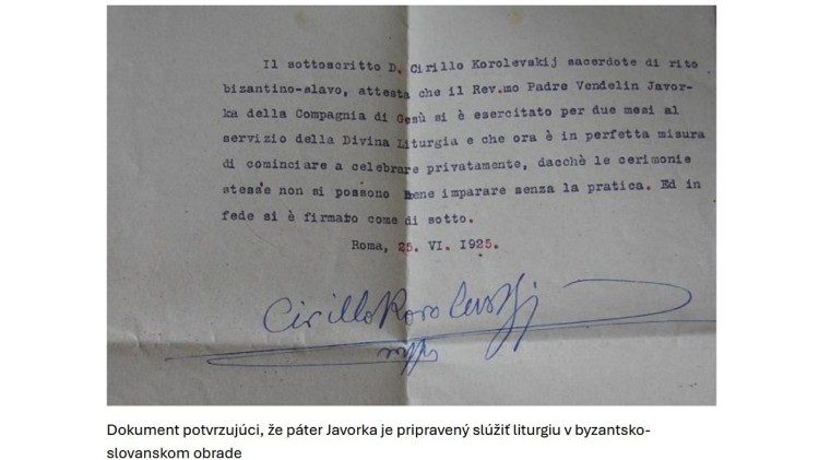 Vendelín Javorka rýchlo prijal byzantsko-slovanský obrad a stal sa len druhým jezuitom, ktorý tak urobil. Rím ho prijal v roku 1925. Prechod na byzantsko-slovanský obrad nebol jednoduchý, pretože si vyžadoval ovládanie iného jazyka a liturgických pravidiel, ktoré boli v tom čase zložité a nie úplne štandardizované. Hoci sa od neho očakávalo, že by mal mať predpoklady k ruským štúdiám, ako Slovák s malými znalosťami bol Javorka vyzvaný, aby sa rýchlo oboznámil s celým obradom.