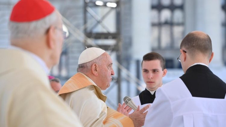 Takto sme to počuli od apoštola Petra v druhom čítaní: „Túlali ste sa ako ovce, ale teraz ste boli privedení späť k pastierovi a strážcovi vašich duší“ (1 Pt 2,25). A aj dnes, v každej životnej situácii, v tom, čo nosíme v srdci, v našich zblúdeniach, v našich strachoch, v pocite porážky, ktorý nás niekedy prepadá, vo väzení smútku, ktorý nám hrozí svojím zovretím, on nás volá. Prichádza ako Dobrý pastier a volá nás po mene, aby nám povedal, akí sme v jeho očiach vzácni, aby uzdravil naše rany a vzal na seba naše slabosti, aby nás zhromaždil do jednoty vo svojom ovčinci a dôverne nás zblížil s Otcom a medzi nami navzájom.