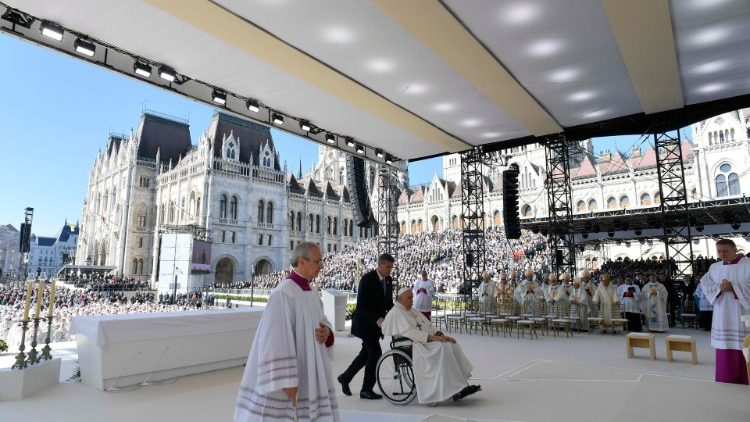 Hovorím to aj našim bratom a sestrám laikom, katechétom, pastoračným pracovníkom, tým, ktorí majú politickú a sociálnu zodpovednosť, tým, ktorí jednoducho žijú svoj každodenný život, neraz s námahou: buďte otvorenými dverami. Dajme vstúpiť do nášho srdca Pánovi života, jeho slovu, ktoré utešuje a uzdravuje, aby sme potom my sami vyšli von a boli otvorenými dverami v spoločnosti. Buďme otvorení a inkluzívni jedni voči druhým, aby sme pomohli Maďarsku rásť v bratstve, ceste pokoja.