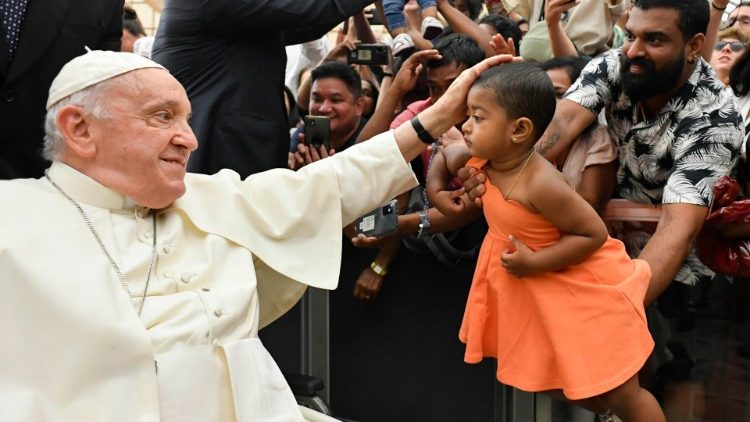 A aj nám Panna Mária hovorí v materinskom jazyku, v tom, ktorému dobre rozumieme. Áno, evanjelium sa odovzdáva v materinskom jazyku. A ja by som chcel poďakovať mnohým matkám a starým matkám, ktoré ho odovzdávajú svojim deťom a vnúčatám: viera sa odovzdáva životom, preto sú matky a staré matky prvými ohlasovateľkami. Zatlieskajme matkám a starým matkám!