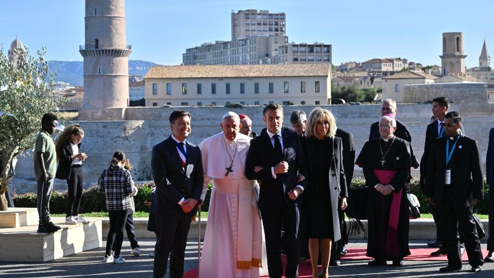 Pápež sa v Marseille stretol s francúzskym prezidentom Macronom