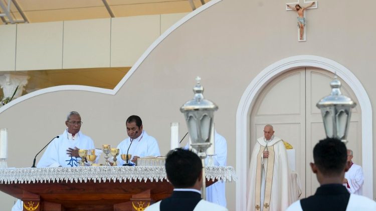 Na Východnom Timore je krásne, pretože je tu mnoho detí: ste mladá krajina, v ktorej na každom rohu cítiť pulzujúci život. A to je veľký dar: prítomnosť toľkých mladých ľudí a toľkých detí neustále obnovuje našu energiu a náš život. Avšak ešte viac je znamením, pretože vytvárať priestor pre deti, pre maličkých, prijímať ich, starať sa o nich a sami sa zároveň stávať maličkými pred Bohom a pred sebou navzájom, sú práve tie postoje, ktoré nás otvárajú Pánovmu pôsobeniu. Tým, že sa stávame deťmi, umožňujeme Božie konanie v nás.