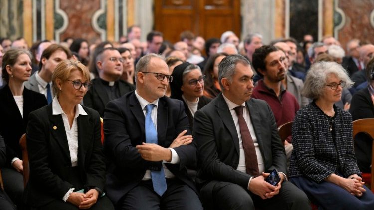 Jubilejný rok, ktorý začneme sláviť o niekoľko týždňov, je veľkou príležitosťou svedčiť o našej viere a našej nádeji svetu. Vopred vám ďakujem za všetko, čo urobíte, za angažovanosť dikastéria pri pomoci pútnikom, ktorí prídu do Ríma, aj tým, ktorí nebudú môcť cestovať, ale vďaka vatikánskym médiám budú môcť sledovať oslavy Jubilejného roka s pocitom, že sú s nami spojení. Zo srdca vám všetkým a vašej práci žehnám. A prosím, nezabudnite sa za mňa modliť. Ďakujem vám!