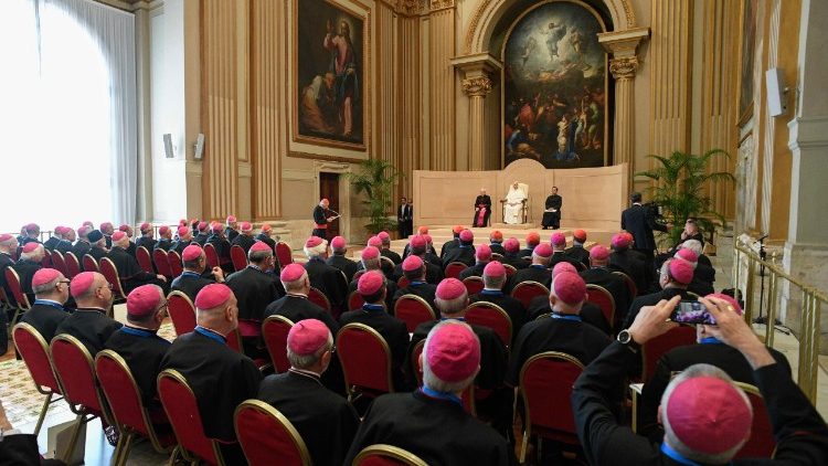 Vyše 200-člennému biskupskému zboru, ktorého predsedom je Mons. Matteo Zuppi, Svätý Otec vysvetlil: „Pri vykonávaní svojej služby spolu s vami, drahí bratia, by som sa chcel inšpirovať princípmi kolegiality, ktoré vypracoval Druhý vatikánsky koncil. Najmä dekrét Christus Dominus ...“