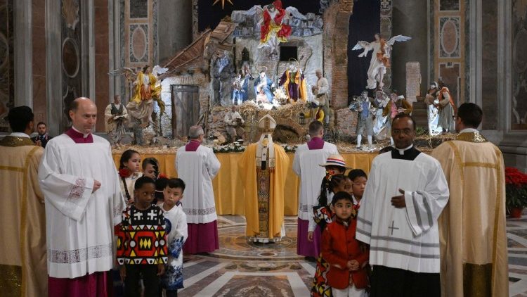 Je to Ježišovo narodenie, narodenie Emanuela. V Synovi, ktorý sa stal človekom, nám Boh nedáva niečo, ale daruje sám seba, „aby nás vykúpil zo všetkej neprávosti a vytvoril si vlastný ľud, čistý“ (Tít 2, 14). V noci sa rodí Ten, ktorý nás z noci vyslobodzuje: stopu rozvidnievajúceho sa dňa už netreba hľadať ďaleko, v hviezdnych diaľkach, ale skloniť hlavu – v maštali nablízku.