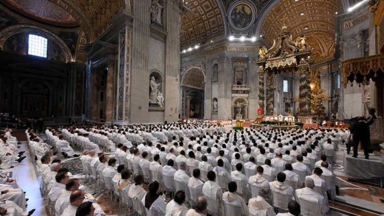 V prvom roku, keď predsedám Omši svätenia krizmy ako rímsky biskup, chcem sa s vami zamyslieť nad poslaním, na ktoré nás Boh posväcuje ako svoj ľud. Je to kresťanské poslanie, to isté poslanie, aké mal Ježiš, nie iné. Každý sa na nej podieľa podľa svojho povolania a v osobnej poslušnosti hlasu Ducha Svätého, nikdy však nie izolovane od druhých a nikdy na úkor spoločenstva! Biskupi a kňazi, keď obnovujeme svoje sľuby, sme v službe misionárskeho ľudu. Spolu so všetkými pokrstenými tvoríme Kristovo telo, pomazané Duchom slobody a útechy, Duchom proroctva a jednoty.
