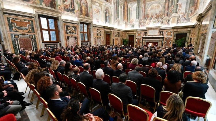Sveti oče je spomnil na začetke združenja, ustanovljenega leta 1943, ki je bilo – kot je dejal – »za Italijo med drugo svetovno vojno odločilno leto«. »Svoje prve korake ste naredili v kontekstu, ki nas opominja, da tudi danes vsak oborožen spopad s sabo prinaša množice pohabljencev in da civilno prebivalstvo trpi dramatične posledice te norosti, ki je vojna. Po končani vojni ostanejo ruševine, tudi v telesih in srcih, in mir je treba ponovno graditi iz dneva v dan, iz leta v leto, s pomočjo zaščite in spodbujanja življenja in njegovega dostojanstva, pri tem pa začeti pri najšibkejših in najbolj prizadetih.«