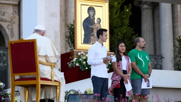 »Together«. »Skupaj«. Kot prva krščanska skupnost na binkošti. Kot ena čreda, ki jo ljubi in zbira en sam Pastir, Jezus. Kot velika množica v knjigi Razodetja smo tukaj, bratje in sestre »iz vseh narodov, rodov, ljudstev in jezikov« (Raz 7,9), prihajamo iz različnih skupnosti in držav, hčere in sinovi istega Očeta, oživljeni z istim Duhom, ki smo ga prejeli pri krstu, poklicani v istem upanju (prim. Ef 4,4-5).