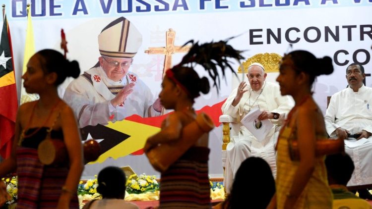Tudi na Vzhodnem Timorju je papež Frančišek zadnje srečanje pred novo postajo apostolskega potovanja namenil mladim. V prestolnici Dili ga je v dvorani Kongresnega centra in pred njim z glasbo in plesom pričakala tritisočglava množica. Pričevanjem je sledil papežev govor v obliki dialoga z mladimi, v katerem jih je spomnil na pomen spoštovanja ostarelih ter jih povabil, naj gojijo vrednote svobode, prizadevnosti in bratstva.