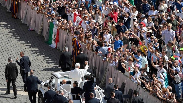 Splošne avdience, ki je potekala na Trgu svetega Petra, se je udeležilo približno 35.000 vernikov in prisluhnilo nadaljevanju cikla jubilejnih katehez o Jezusu Kristusu, ki je naše upanje. Tokratna kateheza je bila namenjena priliki o gospodarju, ki gre iskat delavce za svoj vinograd.