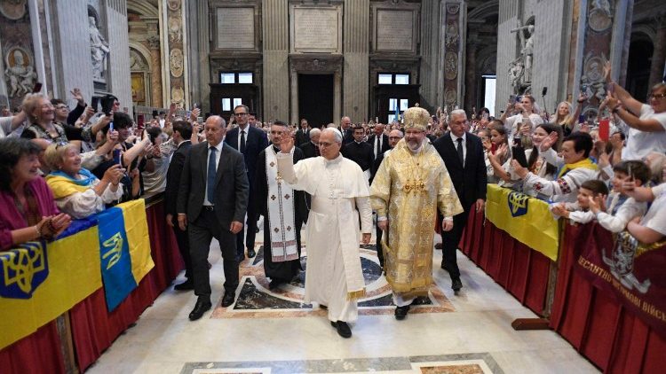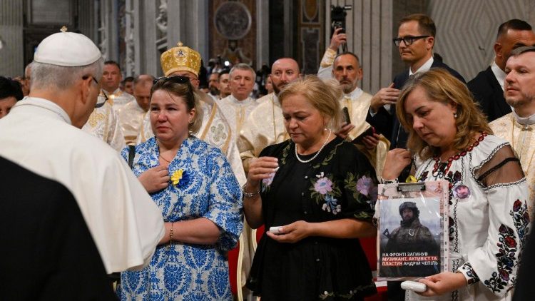 Papež Leon XIV. je izrazil svojo bližino mučeni Ukrajini, otrokom, mladim, ostarelim in na poseben način družinam, ki žalujejo za svojimi bližnjimi. »Z vami delim bolečino zaradi zapornikov in žrtev te nesmiselne vojne. Gospodu izročam vaše namene, vaše napore in vsakodneve tragedije, zlasti pa želje po miru in veselju. Spodbujam vas, da hodite skupaj, pastirji in verniki, ter imate pogled usmerjen v Jezusa, ki je naše rešenje. Naj vas vodi in varuje Devica Marija, ki je Mati upanja prav zaradi svoje pridruženosti Sinovemu trpljenju. Iz srca blagoslavljam vse vas, vaše družine, vašo Cerkev in vaš narod.«