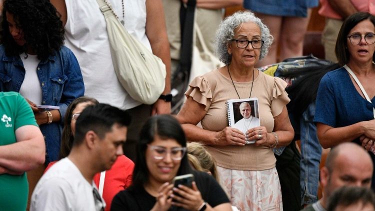 Mnogi verniki so splošno avdienco tudi tokrat spremljali prek velikih zaslonov na trgu Petriano pred vatikansko dvorano Pavla VI. ter v v baziliki svetega Petra. Sveti oče se je ob koncu avdience napotil še k njim, jim namenil nekaj besed in podelil svoj blagoslov.