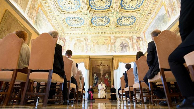 Po uvodnem pozdravu v angleškem, francoskem in italijanskem jeziku je papež izrazil svoje veselje nad tem, da se lahko sreča z mladimi v Vatikanu, v »Petrovi hiši«, ter dodal, da bo govoril »malo v italijanščini in malo v angleščini«. »Vem, da prihajate iz različnih držav, z različnimi jeziki in kulturami, vendar pa vas združuje ena sama velika želja: mirno sobivanje ljudstev, zlasti tistih, ki živijo na področju Sredozemlja. Iskreno si prizadevate uresničevati to željo z osebnim zavzemanjem in s številnimi pobudami: tako na lokalni ravni – v vaših skupnostih – kot na evropski ravni, v dialogu s cerkvenimi in političnimi institucijami. Hvaležen sem za vse, kar delate. Vi ste dokaz, da je dialog mogoč, da so razlike vir obogatitve in ne razlog za nasprotovanja, ter da so drugi vedno naši bratje in sestre in nikoli tujci ali, še huje, sovražniki.