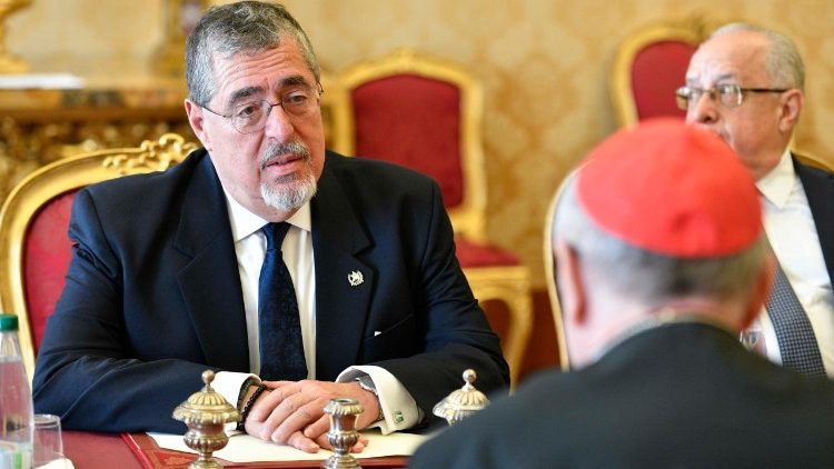 Med prisrčnimi pogovori na državnem tajništvu je bilo poudarjeno vzajemno zadovoljstvo glede dobrih odnosov med Gvatemalo in Svetim sedežem ter želja po njihovi nadaljnji krepitvi. Zatem so se zaustavili ob vprašanjih skupnega interesa, kot so socialno-ekonomski razvoj, boj proti revščini, korupciji, trgovini z drogami in kriminalu, pa tudi sodelovanje s krajevno Cerkvijo za socialno kohezijo in dobrobit države.
