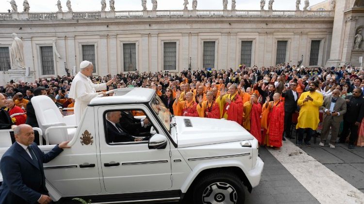 Splošne avdience na Trgu svetega Petra so se poleg romarjev udeležili tudi predstavniki različnih verskih skupnosti, ki so 60. obletnico koncilskega dokumenta Nostra Aetate obeležili že v torek, 28. oktobra, zvečer z dogodkom »Skupaj hodimo v upanju«.