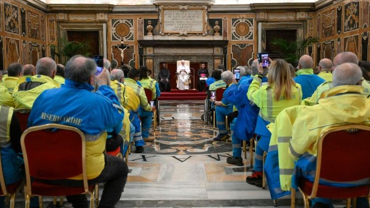 Sveti oče je izpostavil, da so znamenje tega mnoge in različne dejavnosti, ki so jih skozi stoletja sprejeli glede na potrebe bližnjega: poleg sobratov in sosester Misericordie so tu tudi Fratres – prav tako prisotni na avdienci s papežem –, ki so nastali v zadnjem obdobju z namenom spodbujanja kulture darovanja krvi, organov in tkiv; in prav tako pobuda »Majhno usmiljenje«, v okviru katere se tudi otroci učijo živeti karitativno ljubezen.