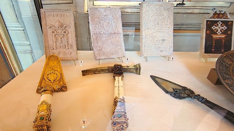 V vitrini, ki se nahaja ob galeriji Urbana VIII., so razstavljeni posebej pomenljivi predmeti, ki omogočajo ponovno odkrivanje zgodovine, obredov in liturgije jubilejnih let. Gre za opeke, kladiva, lopatice, simbole in predmete, ki so jih skozi stoletja uporabljali romarji. Kot je spomnil kustos Luca Pesante, je jubilej leta 1300, ki ga je sklical Bonifacij VIII., »ponovno postavil Rim v središče sveta in povzročil duhovni preporod mesta tudi zaradi prisotnosti Kristusovih relikvij in relikvij mučencev«.