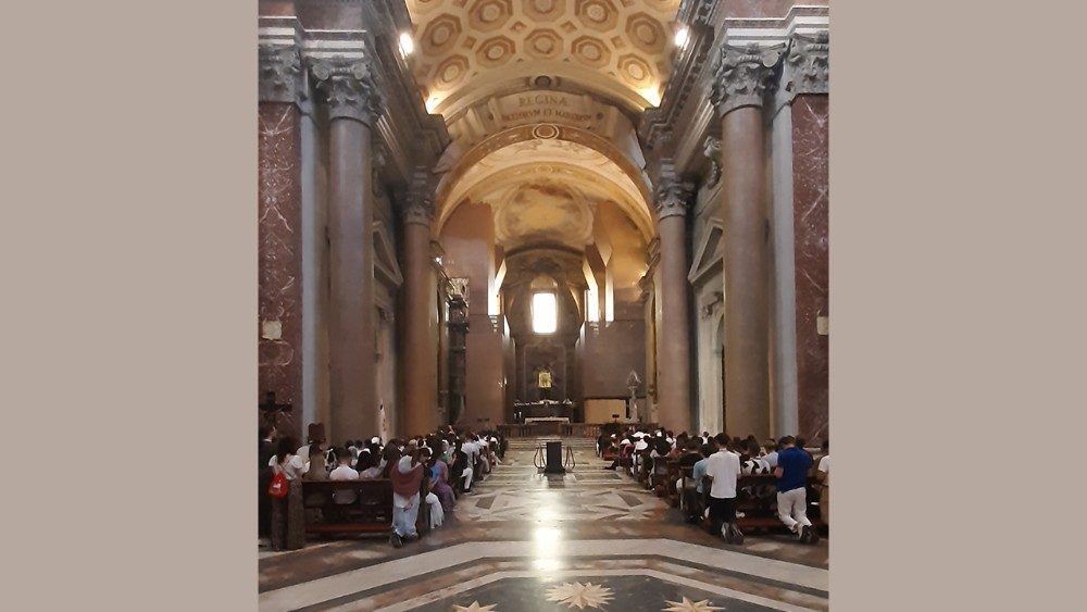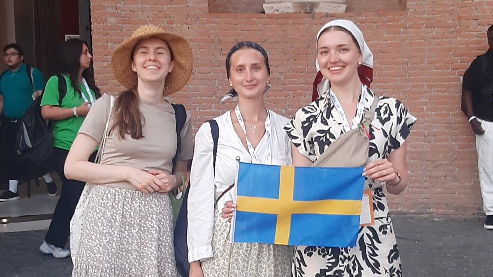 Några sitter i skuggan på gatstenen och lutar sig mot kyrkans svala vägg. Andra håller sig i solen och viftar med flaggor. Fyllda av förväntningar ansluter sig 163 svenskar till de omkring en halv miljon unga pilgrimerna i Rom 28 juli till 3 augusti för att fira Jubelåret 2025 på temat kristet hopp. Det är Stockholms katolska stift som organiserar denna pilgrimsfärd och ungdomskonsulenten Elin Jönsson berättar att målet är att deltagarna ska få upplevelsen att komma närmare himlen. Den kaldeiske katolske biskopen i Skandinavien Saad Sirop Hanna ledde mässan på svenska i Santa Maria degli Angeli e dei Martiri onsdagen den 30 juli.
