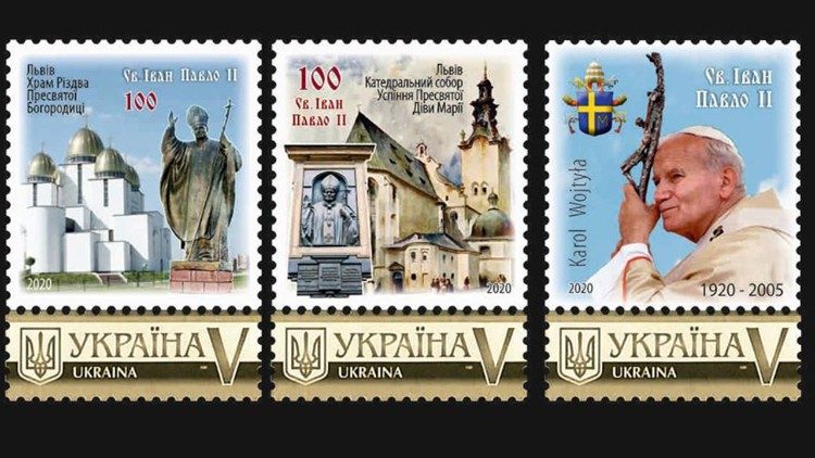 В Україні надруковано і випущено в обіг марки, присвячені святому Католицької Церкви. Такої честі удостоєний святий Іван Павло ІІ. У понеділок, 18 травня 2020 р., на Львівському поштамті відбулося урочисте погашення спеціальним пам'ятним поштовим штемпелем конвертів і персоніфікованих марок з нагоди 100-ліття від дня народження святого Івана Павла ІІ. В церемонії взяв участь колишній Другий особистий секретар Святішого Отця, а нині Архієпископ-Митрополит Львівський латинського обряду Мечислав Мокшицький.