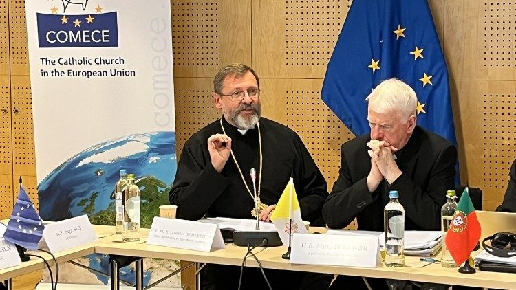 Представники єпископських конференцій ЄС мали можливість поспілкуватися із високопосадовцями ЄС, а також із представниками країн, охоплених війною, зокрема, почути свідчення Блаженнішого Святослава, Верховного Архиєпископа Києво-Галицького, та Блаженнішого П’єрбаттісти Піццабалли, латинського Єрусалимського патріарха. У підсумковій декларації учасники, окрім занепокоєння через кордони ЄС «у вогні», висловлюють побоювання «неконтрольованої ескалації з катастрофічними наслідками для всього людства». Причиною цього вони називають «поляризацію міжнародного співтовариства, що підживлюється оновленою логікою суперництва між великими потугами, а також ерозію довіри до багатосторонніх механізмів взаємодії». Йдеться про ситуацію, яка не може не відбитися на європейських суспільствах, «розпалюючи страхи, послаблюючи діалог і загрожуючи соціальній згуртованості». «У деяких європейських країнах, – пишуть єпископи, – набирають сили такі небезпечні явища, як антисемітизм, радикалізація і ксенофобія, які часто підживлюються систематичним поширенням дезінформації і призводять до насильницького екстремізму і тероризму, які ми рішуче засуджуємо у всіх їхніх формах і проявах».