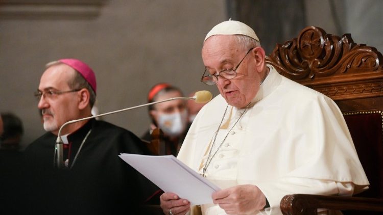Папа Франциск додав, що ступати вперед на шляху до повної єдності можемо тільки тоді, коли наш погляд прикутий до Христа, Який є нашим миром, нашим наріжним каменем. І тоді ми зможемо побачити Господа, що виходить нам назустріч, в маргіналізованому та відкинутому ближньому, в зневажених та відкинутих мігрантах, але й також в мігрантах, які прямують до надії, до більш людяного співіснування.