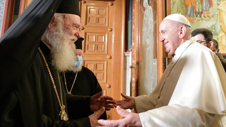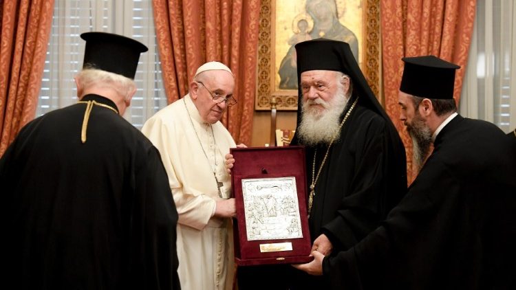 «Благодать вам і мир від Бога», – писав святий Павло християнам Риму, перебуваючи саме в Греції, і цими словами Папа Франциск розпочав свою промову, зазначаючи, що ця зустріч «поновлює цю благодать і цей мир». Зазначивши, що прибув як паломник, «з великою пошаною та смиренням», аби оновити цю апостольську спільність і скріпити братерську любов, він скерував слова вітання до всієї православної громади Греції.