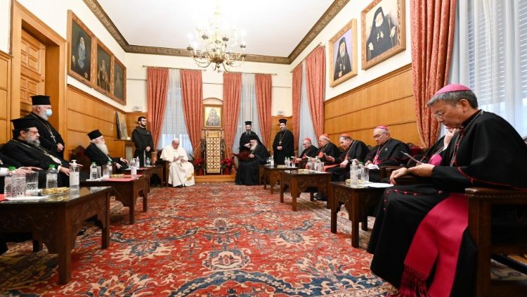 Зустріч в резиденції православних архиєпископів завершилася обміном подарунками, після чого Папа від’їхав до католицького катедрального собору святого Діонісія на зустріч із католицькими єпископами, духовенством, чернецтвом, семінаристами та катехитами.