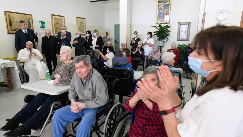 Прес-служба Святого Престолу повідомила про те, що під час візиту на батьківщину своїх батьків, після обіду в кузини у місцевості Портокомаро, що в провінції Асті, Папа Франциск відвідав розташований неподалік заклад для похилих віком. Він звернувся до спільноти закладу з привітальним словом, а опісля поспілкувався з кожним зокрема. Уділивши всім своє благословення, Святіший Отець вирушив до місцевості Тільйоне, щоби відвідати іншу кузинку.