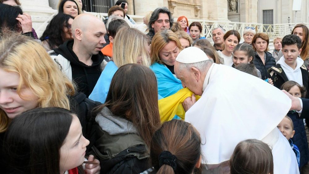 «Це я вам дякую за присутність, бо через це маю змогу побути біля вас, що є народом-мучеником», – такими словами Папа Франциск відповів на подяки, які йому висловлювали українські біженці, що є гостями Карітасу італійської дієцезії Пескара-Пенне. У середу, 8 березня 2023 р., вони були серед учасників загальної аудієнції, під час якої Папа звернувся до світу із закликом не забувати про біль українського народу. Кожного з них Святіший Отець запевнив у своїй близькості.