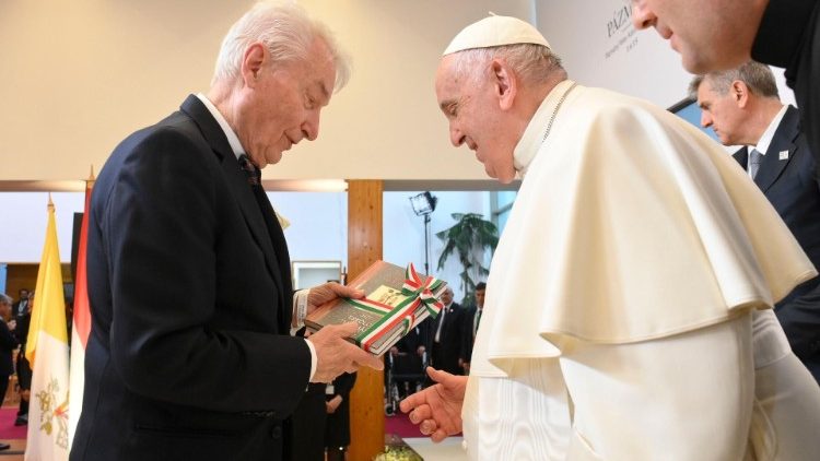 «Це остання зустріч в рамках мого візиту в Угорщину, тож з вдячним серцем мені подобається думати про течію Дунаю, що з’єднує цю країну з багатьма іншими, поєднуючи не лише географічно, але й історично. У певному сенсі культура є немов велика ріка: вона єднає і тече через різні регіони життя та історії, пов’язуючи їх, дає змогу плисти світом і досягати далекі краї та землі, втамовує спрагу розуму, зрошує душу, причиняється до зростання суспільства», – сказав Папа, розпочинаючи свою останню промову в Угорщині. Пополудні в неділю, 30 квітня 2023 р., він попрощався з персоналом Апостольської нунціатури, що на три дні стала для нього домом, і прибув до осідку факультету інформатики та біоніки Католицького Університету Петера Пазманя, де відбулася зустріч з представниками академічного середовища та світу культури.