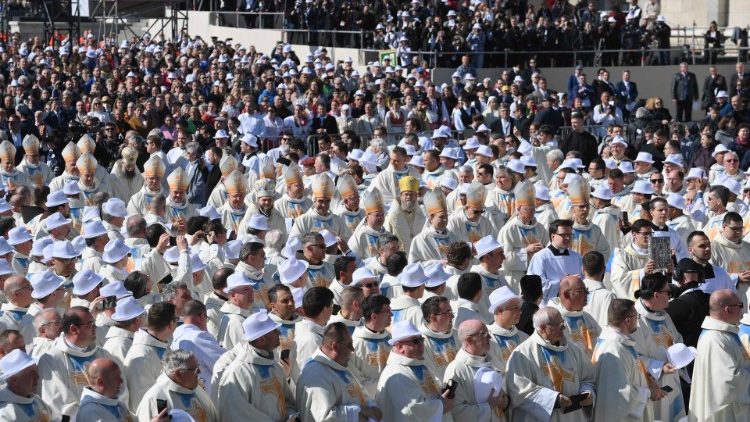 «Браття й сестри, зібравшись тут цього ранку, ми відчуваємо радість від того що є святим Божим людом: всі ми народжуємося з цього покликання; це Він нас скликав, через це ми – Його народ, Його отара, Його Церква. Він зібрав нас, хоч і відрізняємося між собою та належимо до різних спільнот, щоби велич Його любові об’єднала всіх в одних обіймах. Бути разом – прекрасно: єпископи і священики, богопосвячені особи та миряни. Прекрасним є розділити цю радість із екуменічними делегаціями, з очільниками єврейської спільноти, з представниками цивільних інституцій і дипломатичного корпусу. В цьому й полягає католицькість: всі ми, християни, покликані на ім’я добрим Пастирем, покликані приймати та поширювати Його любов, робити його кошару інклюзивною, яка ніколи нікого не виключає», – наголосив Папа.