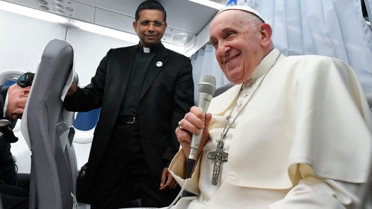 Міграція, захист життя та війна в Україні були серед тем, яких торкнулися журналісти під час пресконференції на борту літака під час повернення Папи Франциска з Марселя.