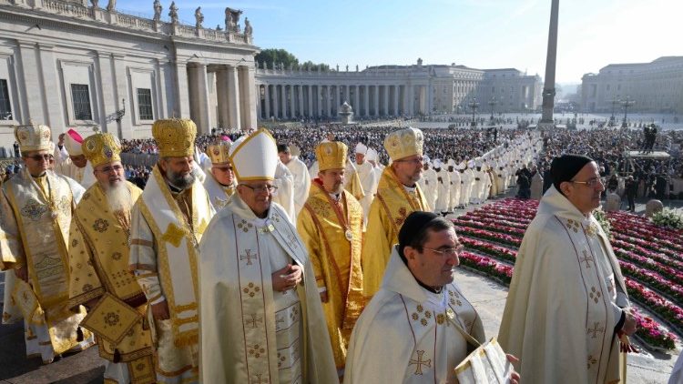 «Ми не зібралися тут для того, щоб провести засідання парламенту чи розробити план реформ. Синод, дорогі браття й сестри, – це не парламент. Головною дійовою особою є Святий Дух. Ні. Ми тут не для того, щоб займатися парламентаризмом, а для того, щоб разом прямувати вперед з поглядом Ісуса, Який благословляє Отця і приймає всіх втомлених і пригноблених. Тож вирушаймо від погляду Ісуса, який є благословляючим поглядом і поглядом, що приймає», – сказав Папа Франциск, проповідуючи під час Святої Меси, яку він у середу, 4 жовтня 2023 р., очолив на площі Святого Петра у Ватикані з нагоди початку першої сесії XVI Звичайної Асамблеї Синоду Єпископів, що від 4 до 29 жовтня відбуватиметься у Ватикані на тему: «Задля синодальної Церкви: сопричастя, участь і місія». Це богослужіння також стало нагодою для Наступника святого Петра піднести подячну Євхаристійну молитву разом з новими кардиналами, що були введені в сан минулої суботи.