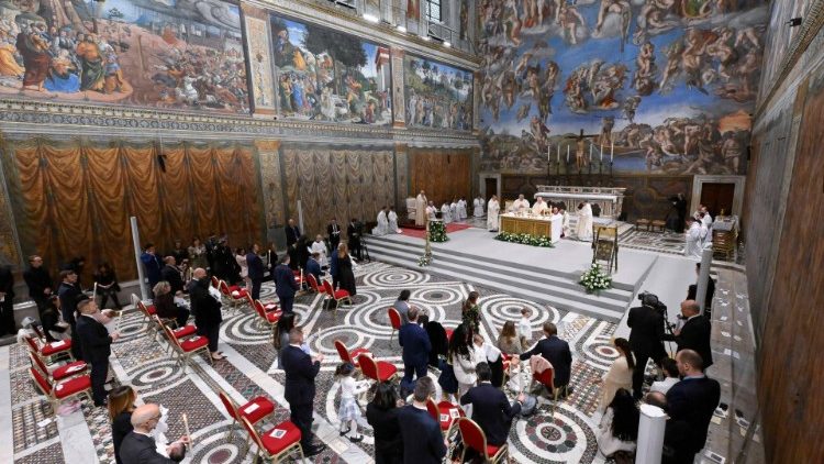 Згідно з давнім звичаєм, у свято Хрещення Господнього Сикстинська каплиця Апостольського палацу у Ватикані наповнилася не лише літургійними мелодіями, але також «співом» немовлят, які протягом року побачили світ у сім’ях ватиканських працівників. Серед всесвітньо відомих фресок, що є свідками обрання Наступника святого Петра, Папа приєднав їх до містичного Христового Тіла – святої Матері Церкви. Євхаристійне богослужіння співслужили та допомагали звершувати хрещальні обряди кардинали Конрад Краєвський, Апостольський елемозинарій, та Фернандо Верґес Альсаґа, очільник Губернаторства Держави-Міста Ватикану.