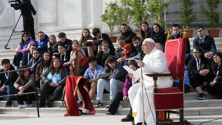 На початку Папа Франциск зазначив, що перебування разом дає змогу через молитву, погляд та усмішку поділитися тим дивом, яким ми є – даром бути Божими дітьми. «Я не знаю, чи вам траплялося пережити певний досвід, настільки прекрасний, що ви не могли тримати його в собі, відчуваючи потребу поділитися ним. Ми всі маємо такий досвід, досвід настільки прекрасний, що відчуваємо потребу ділитися ним. Ми сьогодні зібралися тут для цього: щоб наново відкрити в Господі красу, якою ми є, і радіти в ім'я Ісуса, юного Бога, Який любить молодь і Який завжди вражає», – сказав він.