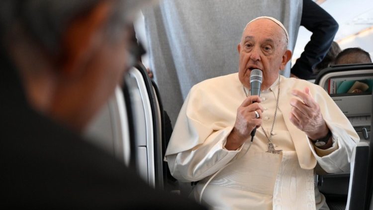 Під час перельоту також відбулося традиційне спілкування з журналістами, під час якого Папа Франциск прокоментував деякі моменти своєї подорожі та деякі події міжнародного характеру. Першими запитання ставили журналісти з країн, які відвідував Святіший Отець. Представник преси з Люксембургу, зауваживши, що багатьом запам’ятався несподіваний візит Папи до бару, запитував, що його найбільше вразило в цій країні. Відповідаючи, Святіший Отець зазначив, що відвідини бару, це була трохи витівка, наступною повинні стати відвідини піцерії. «Люксембург справді вразив мене як добре збалансоване суспільство, з добре збалансованими законами, а також відмінною культурою. Це мене дуже вразило, тому що я не знав його. Бельгію, натомість, я знав, бо приїжджав туди кілька разів. Але Люксембург став для мене сюрпризом, через врівноваженість, гостинність, це те, що мене вразило. Я думаю, що, можливо, послання, яке Люксембург може дати Європі, полягає саме в цьому», – сказав він.