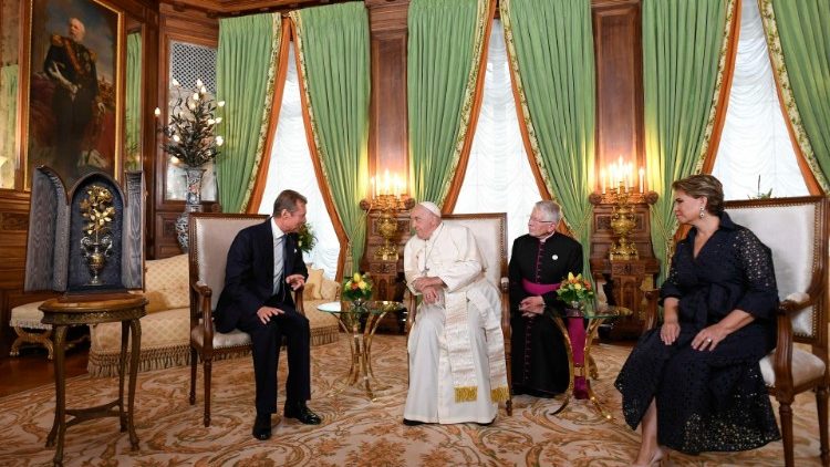 Прилетівши до Люксембурга, Святіший Отець з летовища прибув до палацу Великих Герцогів, щоб здійснити візит ввічливості до Глави Держави. В той час, як Папа мав приватну розмову з Великим Герцогом у Королівському залі палацу, паралельно в салоні Міністрів відбувалася розмова Глави Уряду з делегацією Святого Престолу, яку очолював Заступник Державного Секретаря архиєпископ Едґар Пенья Парра. Згодом Премʼєр-міністр перейшов до Королійського залу, де також мав коротку розмову з Папою. Нагадаємо, що кардинал Паролін не бере участь у цьому візиті, оскільки представляє Святий Престол на Генеральній Асамблеї ООН в Нью-Йорку.