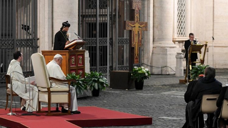 Врешті, як зазначає Наступник святого Петра, синодальність, як і єдність між християнами, потрібна для свідчення. «Щоб усі були одно, … щоб світ увірував», – молився Христос. «Екуменічний рух народився з прагнення свідчити разом, з іншими, а не осторонь один від одного, або, що ще гірше, один проти одного. І тут святі мученики нагадують нам, що сьогодні в багатьох частинах світу християни різних традицій разом віддають своє життя за віру в Ісуса Христа, проживаючи екуменізм крові. Їхнє свідчення сильніше за будь-які слова, бо єдність походить від Господнього Хреста», – наголошує Святіший Отець, нагадуючи, що ця асамблея почалася покаянним богослужінням. «Сьогодні ми, – додає він, – висловлюємо також сором за скандал християнського розділення, за скандал того, що ми не даємо разом свідчення про Господа Ісуса. Цей Синод є нагодою виправитися, подолавши стіни, які досі існують між нами. Зосередьмося на спільній основі нашого спільного Хрещення, яке спонукає нас стати учнями-місіонерами Христа, зі спільною місією. Світ потребує спільного свідчення, світ потребує, щоб ми були вірними нашій спільній місії».