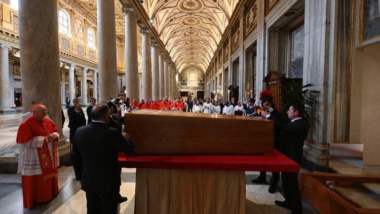 Похорон Папи Франциска в суботу, 26 квітня 2025 р., завершився похованням у Папській базиліці Santa Maria Maggiore. Після кінцевої молитви труна була опечатана печатками Камерленга, Префектури Папського дому, Бюро Папських літургійних богослужінь та Капітули базиліки Пресвятої Марії. Після окроплення освяченою водою труну вклали до гробу. Тоді нотар капітули базиліки приготував акт про поховання, зачитав його присутнім, після чого його підписали свідки.