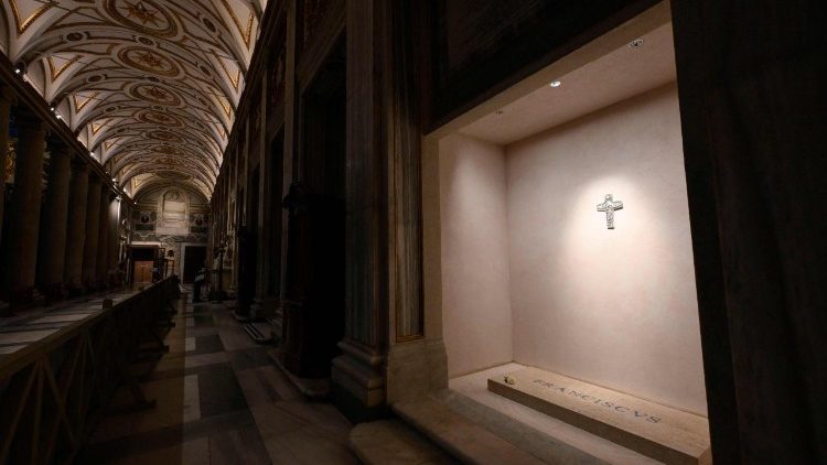 Отож гробниця була підготовлена в ніші бічного нефа між Павловою каплицею (каплицею Спасіння римського люду) та каплицею Сфорци, однією з перших побудованих в базиліці. «Це місце здавалося більш відповідним ще з тієї причини, що поруч знаходиться вівтар святого Франциска. Таким чином, місце видається справді ідеальним» – зазначив кардинал Макріцкас. Кардинал розповів, що покійний Папа також дав вказівки щодо підготовки місця поховання, які також зазначені в заповіті: «Він хотів, щоб його гробниця була скромною і простою, такою ж простою, як і його життя. Тому на ній буде тільки напис його імені, Франциск, і збільшена репродукція нагрудного хреста, який він носив. Ще одна деталь: гробниця зроблена з ліґурійського каменю, із землі його предків, по материнській лінії».
