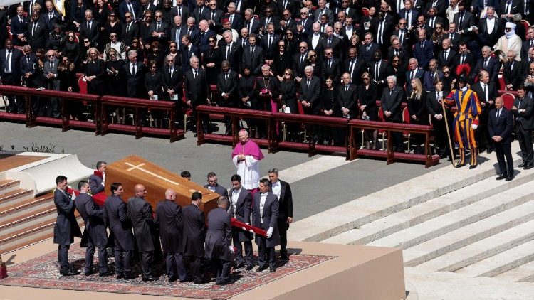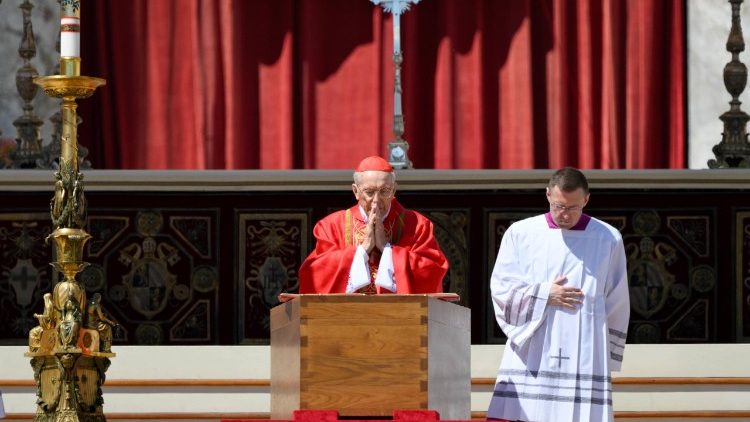 «Папа Франциск, зазвичай, завершував свої промови та зустрічі, кажучи: “Не забувайте молитися за мене”. Дорогий Папо Франциску, тепер просимо тебе молитися за нас, щоб ти з неба благословив Церкву, благословив Рим, благословив увесь світ», – такими словами кардинал Джованні Баттіста Ре, Декан Колегії кардиналів, підсумував проповідь, яку він виголосив під час Святої Меси з нагоди похорону в суботу, 26 квітня 2025 р., на площі Святого Петра у Ватикані.