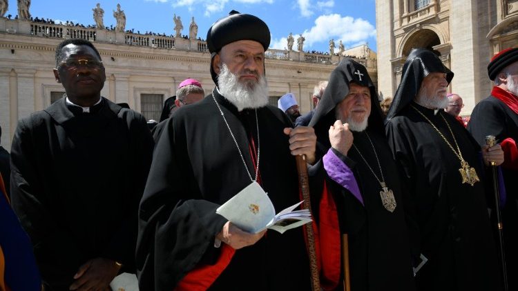 З кардиналом Ре співслужили майже тисяча кардиналів і єпископів, між якими також були ієрархи з України та українські єпископи з діаспори, зокрема, Глава УГКЦ Блаженніший Святослав Шевчук та Львівський римо-католицький архиєпископ Мечислав Мокшицький. На Святу Месу прибули представники інших християнських конфесій, деякі з яких були представлені на найвищому рівні, тобто, предстоятелями, між якими – Вселенський Константинопольський патріарх Вартоломей І. Були також представники інших релігій, між якими не забракло й представників юдаїзму, незважаючи на шабат. У богослужінні взяли участь приблизно 160 офіційних делегацій, понад половина з яких були очолювані монархами або президентами, чимало – главами урядів. Українську делегацію очолював Президент Володимир Зеленський.