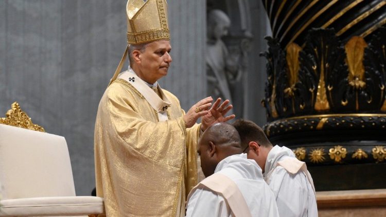 Відтак проповідник звернувся до дияконів, які отримали під час Святої Меси пресвітерські свячення. «Я скажу вам кілька простих речей, але які вважаю важливими для вашого майбутнього і для майбутнього душ, які будуть вам довірені. Любіть Бога і своїх братів й сестер, будьте великодушними, ревними у звершенні Святих Таїнств, у молитві, особливо в адорації, і в служінні. Будьте близькими до своєї пастви, жертвуйте свій час і сили для всіх, не шкодуючи себе, не роблячи різниці між людьми, як вчить нас пробитий бік розп’ятого Христа і приклад святих», – заохотив Святіший Отець.