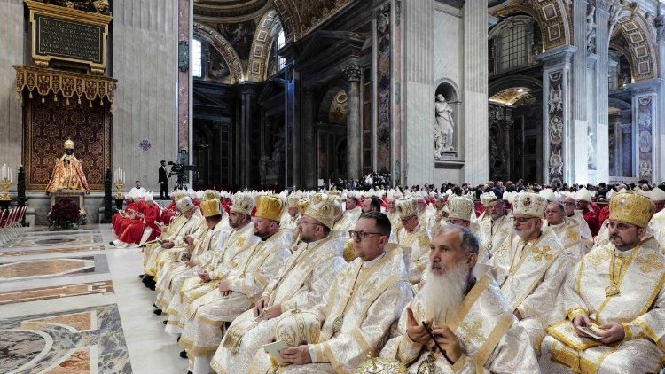 В цьому контексті Єпископ Риму, насамперед, звернувся до Церкви в цьому місті, яка «першою з-поміж усіх» покликана ставати знаком сопричастя та палати живою вірою. «У радості цього сопричастя», плекати яке нас заохочує приклад апостолів Петра і Павла, Папа звернувся зі словами привітання до митрополитів, що прибули отримати паллій. «Дорогі, цей знак, нагадуючи про доручене вам пастирське завдання, виражає єдність із Єпископом Риму, щоб у єдності католицької віри кожен із вас міг живити її в довірених вам місцевих Церквах», – мовив він, після чого додав: «Хочу також привітати членів Синоду Української Греко-Католицької Церкви: дякую за вашу присутність тут і за вашу пастирську ревність. Нехай Господь дарує мир вашому народу!». Врешті, Лев XIV також привітав делегацію, яку направив Константинопольський патріарх Вартоломей І.