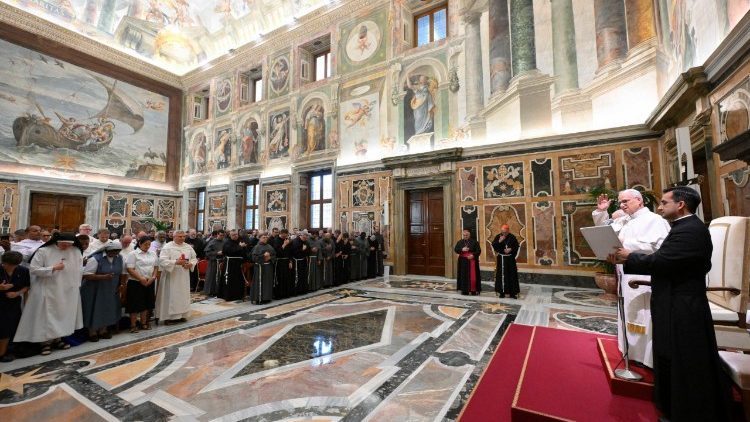 Говорячи про Правила Ордену Братів Менших конвентуальних, Святіший Отець вказав на потребу бачити в них Божі речі, щоб в чернечому житті керуватися не власним інтересом, а Христом. Задля цього він закликав прислухатися до дії Святого Духа, розпізнаючи Його в голосі співбрата, в спільнотному житті та через увагу до знаків часу. «Дорогі сини святого Франциска Ассізького, у восьме сторіччя написання “Пісні про створіння” (Пісня брату сонцю), я запрошую вас, кожного особисто і кожну вашу братерську спільноту, бути живим нагадуванням про першість прославлення Бога в християнському житті», – зазначив Папа Лев XIV.